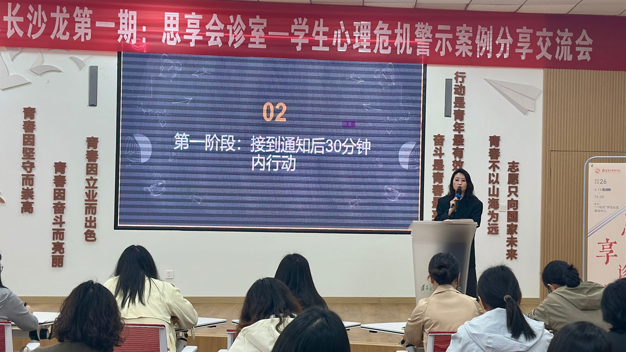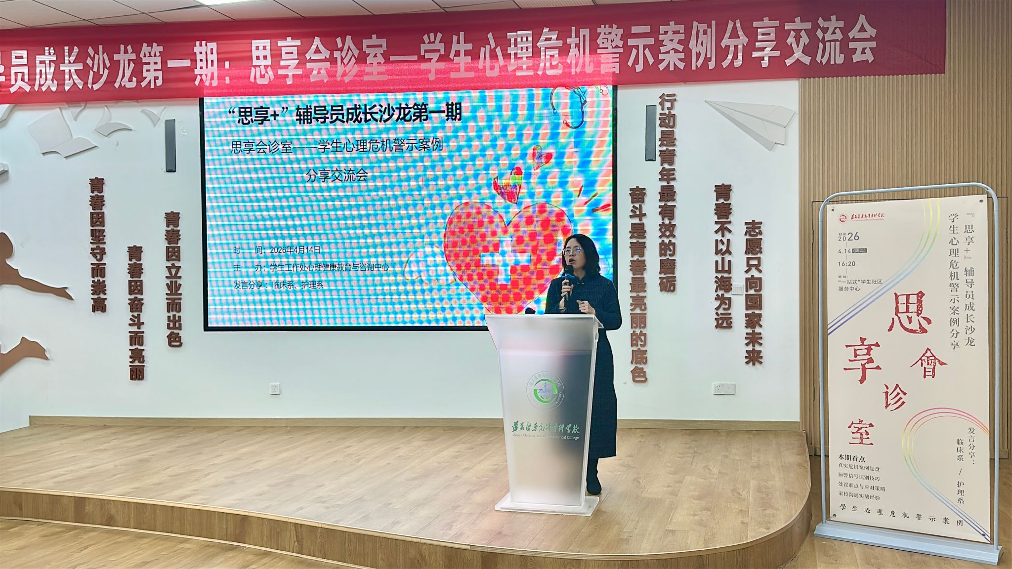 为深入贯彻落实立德树人根本任务,提升辅导员队伍在学生心理危机识别、处置与跟进等方面的实战能力,2026年4月14日,第一期“思享+”辅导员成长沙龙在“一站式”学生社区服务中心顺利举行。本期沙龙以“思享会诊室——学生心理危机警示案例分享会”为主题,聚焦实习学生突发极端事件的应急处置与心理干预。学校党委委员校长陆远富、党委委员副校长李冬梅、全体专职辅导员共50余人参加了本次活动。沙龙由学生处心理健康教育与咨询中心主持,临床系、护理系作案例发言分享。