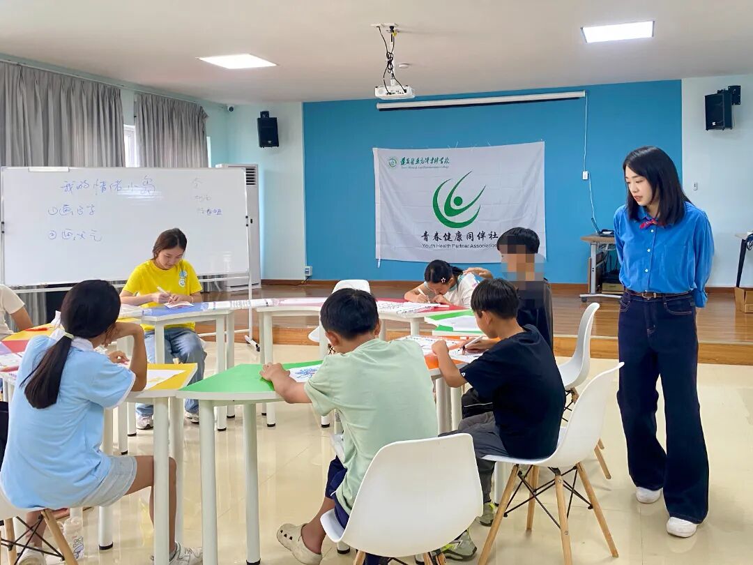 活动中,志愿者们充分发挥同龄人优势,与孩子们一起通过色彩和图形表达内心情感。在创作"情绪小岛"的过程中,志愿者们以朋友般的陪伴和专业的引导,帮助孩子们学会识别和表达情绪,建立起情感交流的桥梁。这种轻松愉悦的互动方式,既消除了传统心理辅导的距离感,又让情绪表达变得自然而生动。